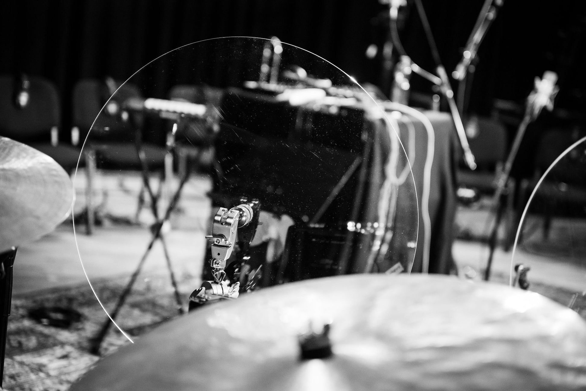 Cymbal / Drum baffles are an effective alternative to a drum screen although they have a different application which is to refract or redirect sound. Baffles can be positioned in front of louder instruments on a drum kit such as cymbals or a snare for refracting harsh frequencies (reducing bleed into mics on stage especially vocal mics) and are relatively invisible on the stage.
