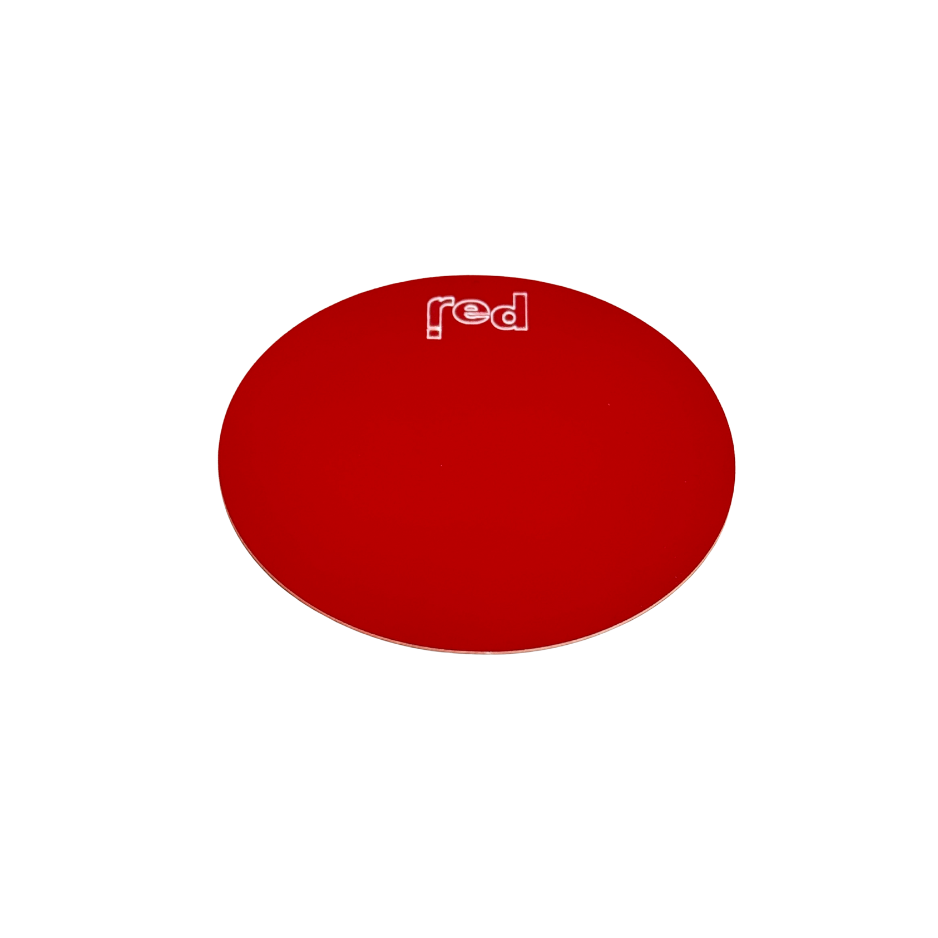 The Red Bass Drum Kick Patch - a solution to prolong the life of your bass drum skin and prevent it being broken as well as improving the sound of your bass drum.